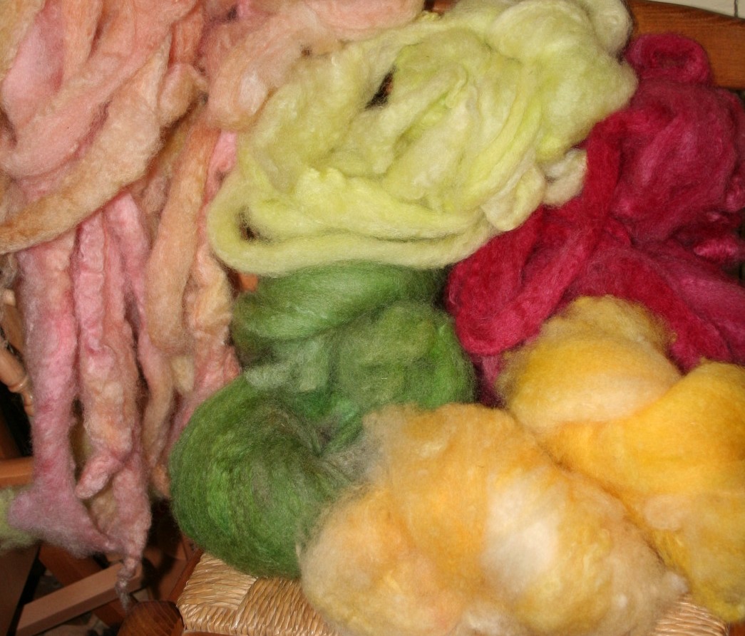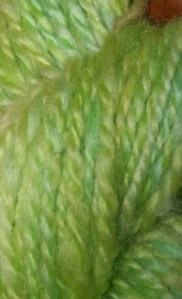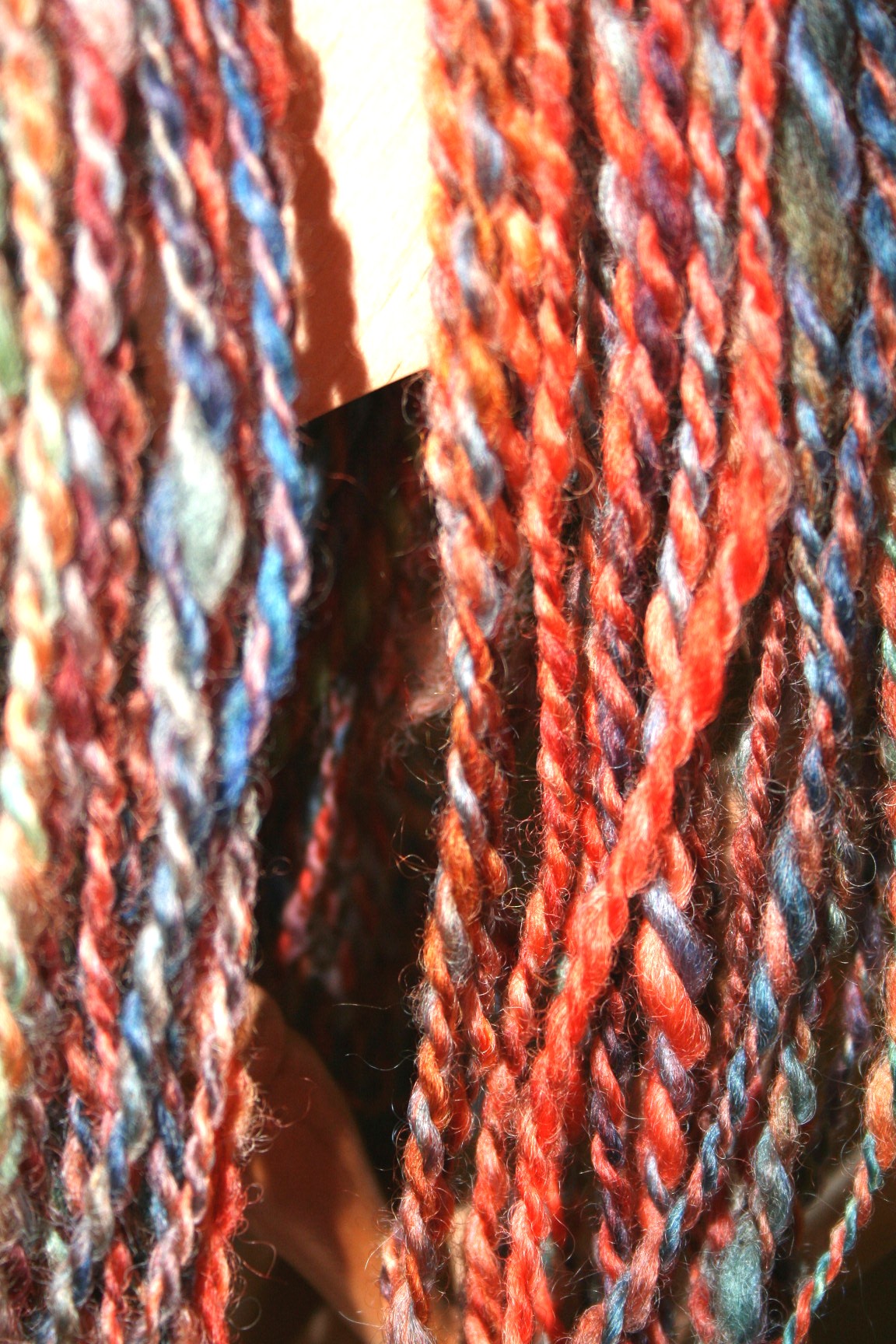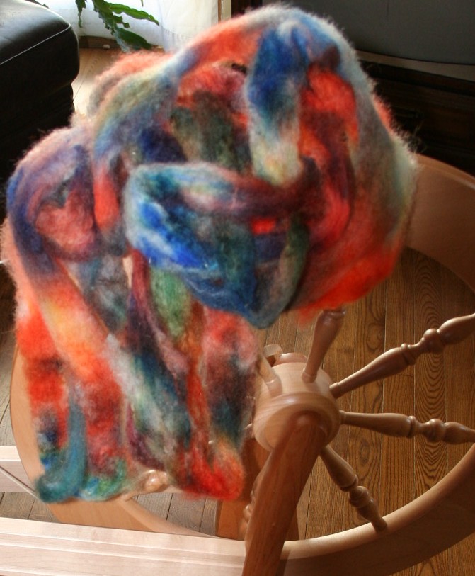 hand-spun wool from dyed batt