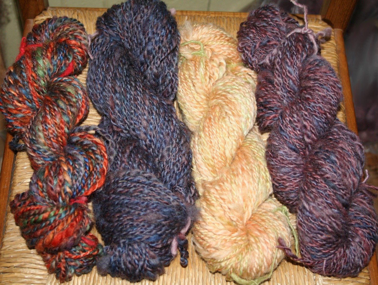 collection of hand dyed and spun wool