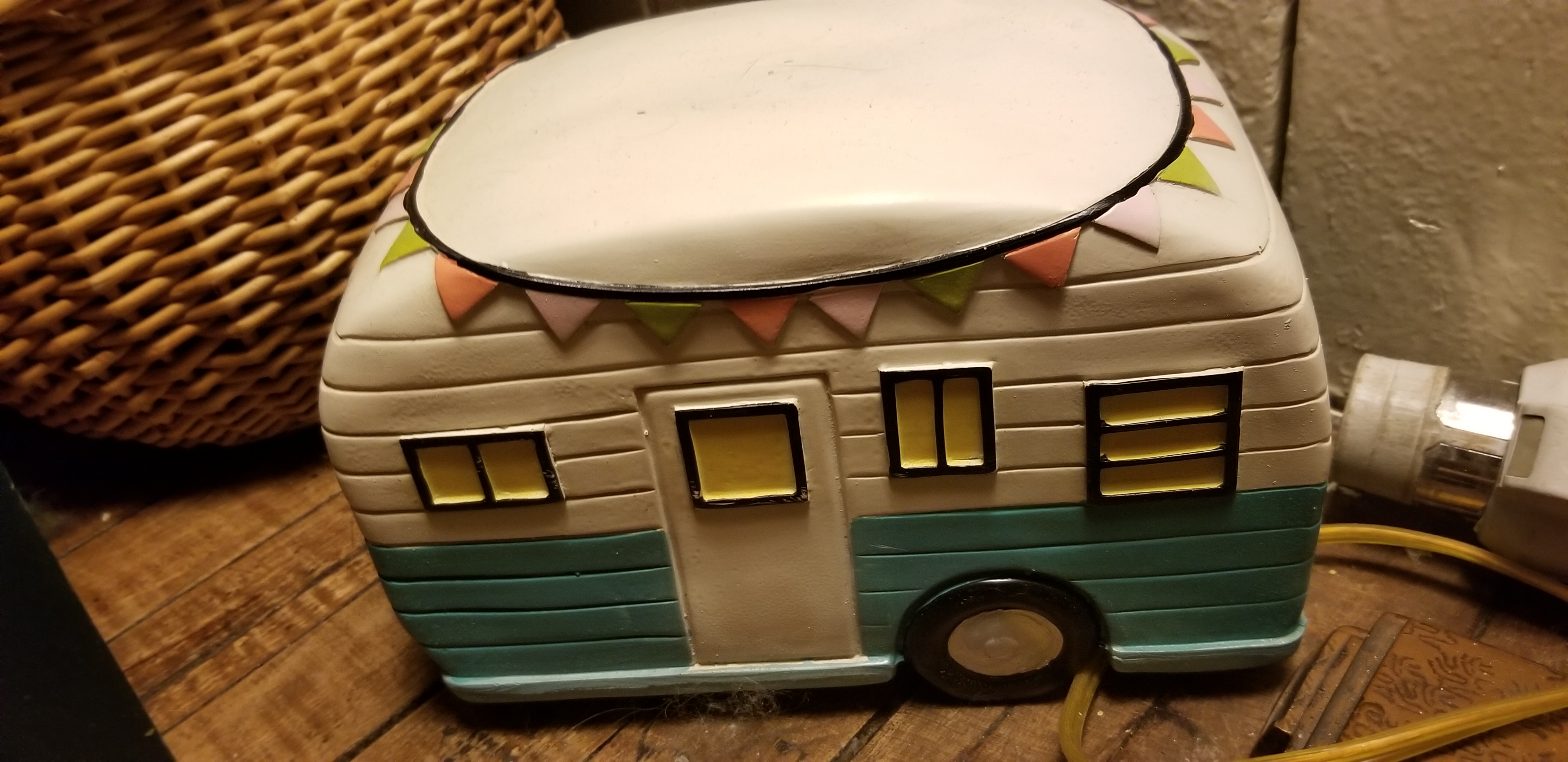 I found an ornamental camper trailer at Walmart and plan to use it as inspiration for the makeover. Maybe it’ll be a mini me lol